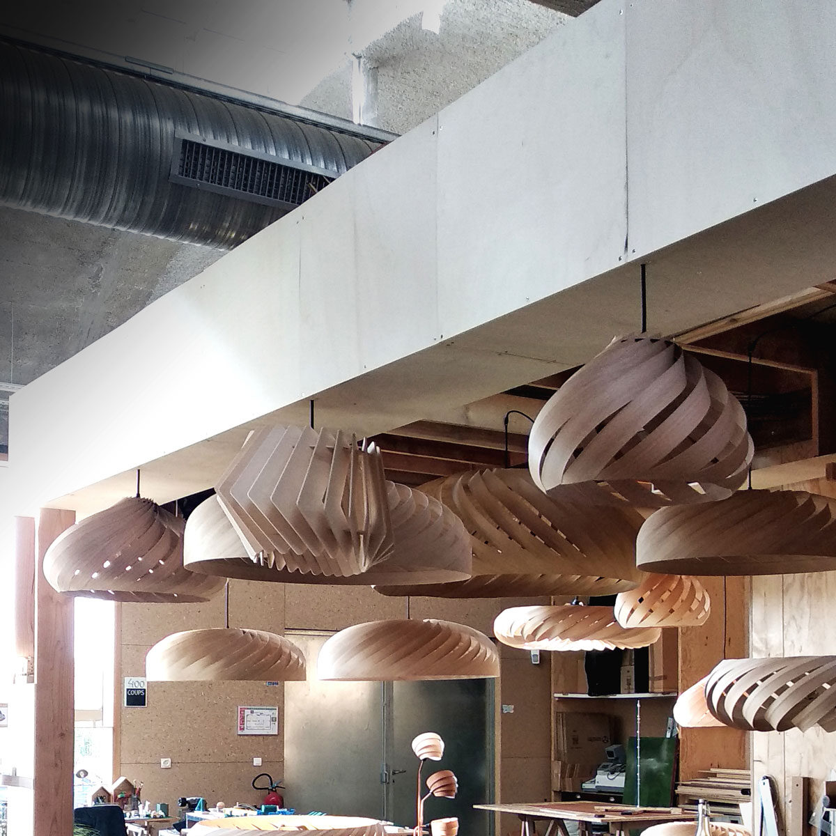 Luminaires en bois, fait main, conçu et fabriqué à Lille